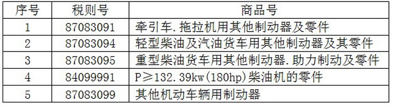 表 4:5個(gè)稅則號(hào)汽車零部件