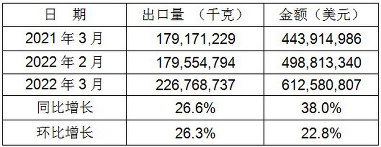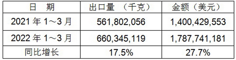 根據(jù)海關(guān)數(shù)據(jù)統(tǒng)計(jì),2022年1~3月我國(guó)鑄件出口總體保持增長(zhǎng),其中: